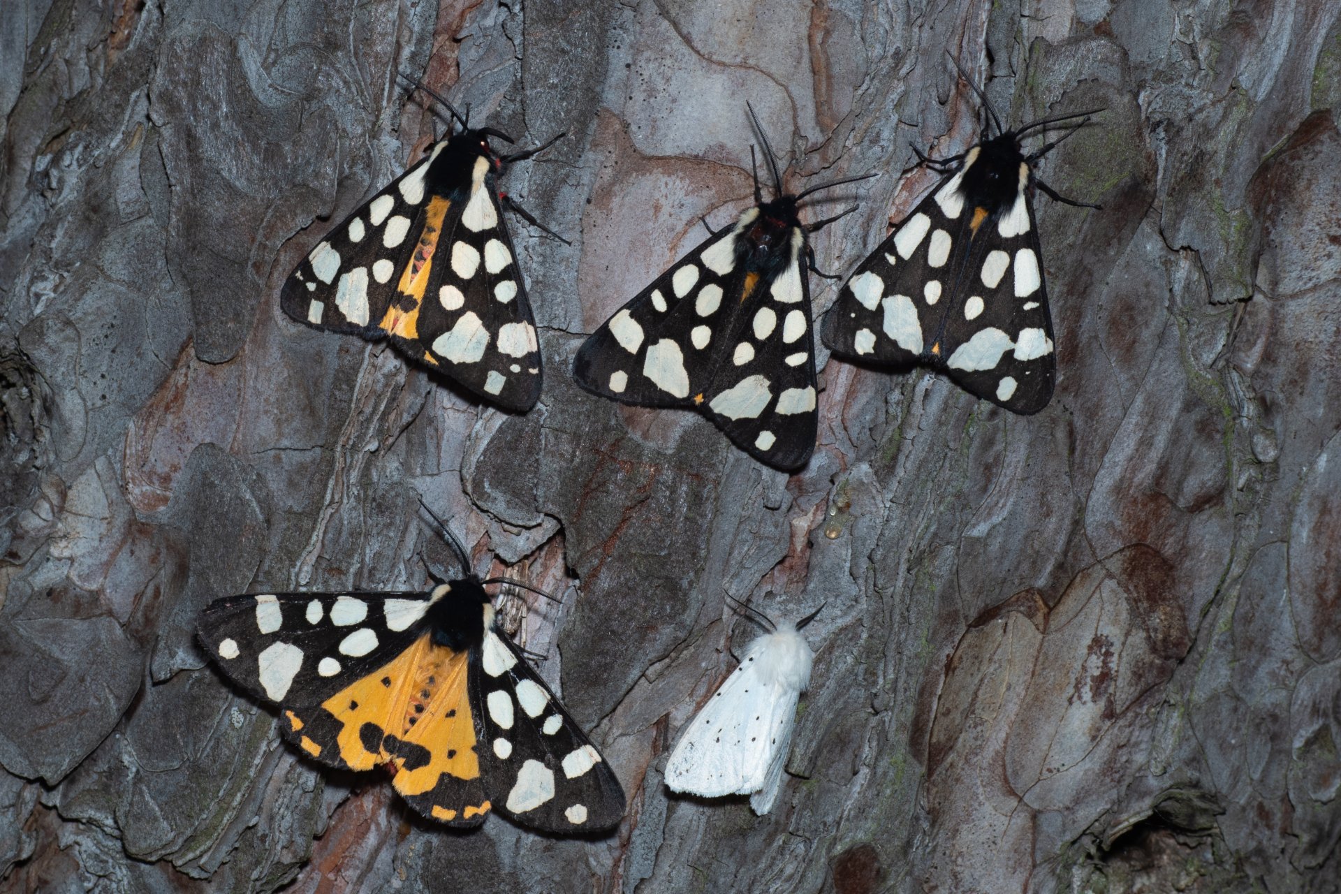Arctia villica (přástevník špenátový), Spilosoma lubricipeda (přástevník mátový), Kobylí