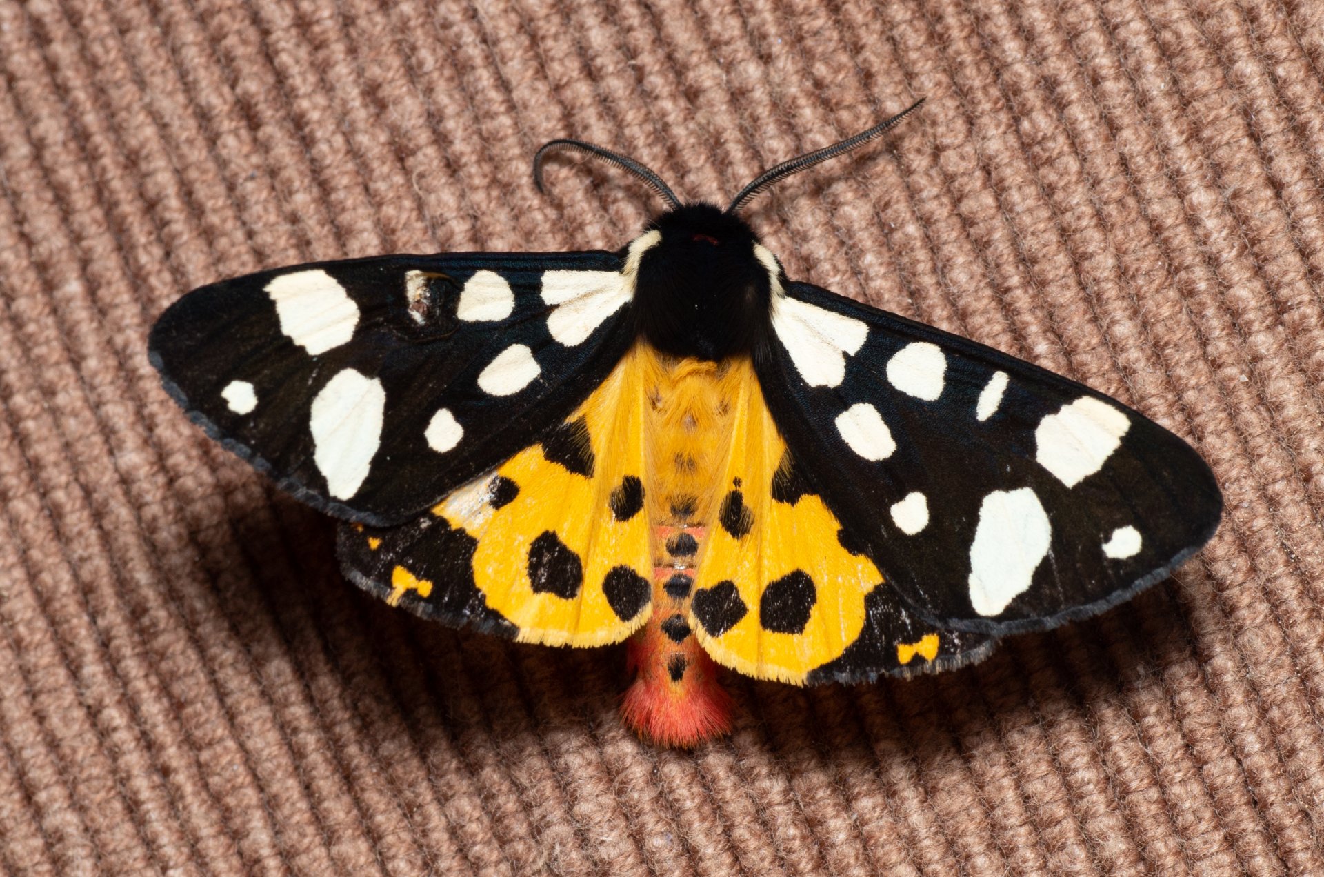 Arctia villica (přástevník špenátový), IT, Kuens, Jižní Tyrolsko